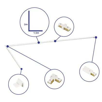 | Fabrikantnaam | Complete L shaped 1-Phase Track Set White – 1.5 x 2 meters incl. End Cap, Power Connector and L-Con | |