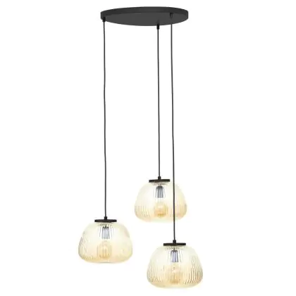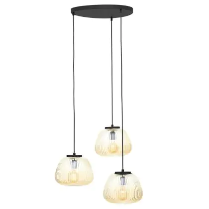 Beschrijving Brilliant Kaizen Hanglamp Glas Hanglamp Metaal Zwart Beige | 400mm - Geschikt voor 3x E27