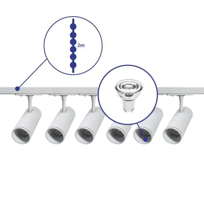 | Fabrikantnaam | Complete Straight 2-meter 1-Phase Track Set White incl. 6x Spot fixture + GU10 2700K 3W Dim – 2x 1 M | |
