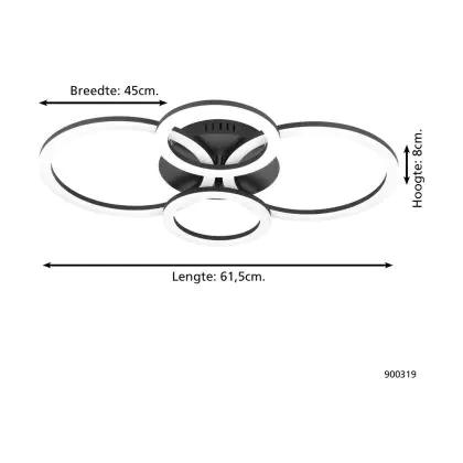 Beschrijving Eglo Plafondlamp Parrapos-Z Staal Zwart 6.5W 5800lm - 830-865 Afstembaar Wit | IP20 - Zigbee Dimbaar