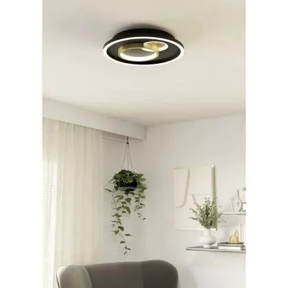 Beschrijving Eglo Wand en Plafondlamp Tiriolo Staal Zwart Goud 14W 1800lm - 840 Koel Wit | IP20