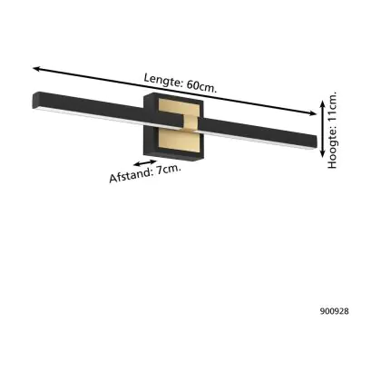 Beschrijving Eglo Wandlamp Peguera Aluminium Staal Zwart 11W 1165lm - 830 Warm Wit | IP44