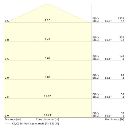De lichtopbrengst (Lumen), geeft weer hoe krachtig het uitgestraalde licht is. Dit is belangrijk om te weten om de juiste sfeer te creëren. 0 tot 400 Lumen is bij uitstek geschikt voor accent- of sfeerverlichting. Een hoger aantal Lumen is, afhankelijk van de grootte van de ruimte, beter geschikt als ondersteunende- of basisverlichting. Heb je plafonds hoger dan 4 meter, dan is een lichtopbrengst van minimaal 8000lm aan te raden indien heldere verliching gewenst is (vb. in werkomgevingen).
