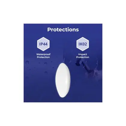 Een belangrijk element van LED plafondlampen is de IP waarde. Dit getal geeft de mate van bescherming aan tegen binnendringen van stof en vocht/water. Vanaf IP65 is het stof- en waterdicht. De IP waarde van deze LED plafondlamp is: IP44 - Stof- en Spatwaterdicht. Ben je op zoek naar een LED plafondlamp voor buitengebruik? Dan voldoet een product met een IP44 waarde (spatwaterdicht) al. Meer baat bij een product met een ander IP waarde? Klik dan hier voor ons complete assortiment aan LED plafondlampen en gebruik het zoekfilter 'IP waarde' aan de linkerkant van de pagina. Let bij het plaatsen van een LED plafondlamp in de buitenlucht ook op de IK waarde (slagvastheid). De IK waarde van deze LED lamp is: IK02 - 0.20 Joule.