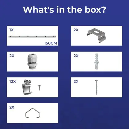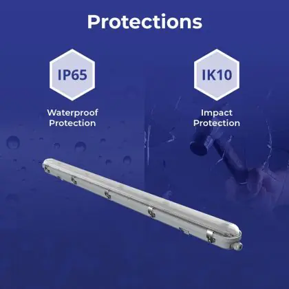 Een belangrijk element van LED montagebalken is de IP waarde. Dit geeft aan in hoeverre een product stof- en waterdicht is. IP44 betekent dat een armatuur spatwaterdicht is en vanaf IP65 is een LED armatuur volledig stof- en waterdicht. De IP waarde van deze LED montagebalk is: IP65 - Stof- en Waterdicht. Wanneer een LED montagebalk volledig waterdicht is, kun je deze perfect gebruiken voor ruimtes waar het vochtig kan worden of neerslag valt, zoals stallen, loodsen, kelders, parkeergarages en buitenplaatsen. Wil je meer weten over de IP waarde? Klik dan hier om onze blog te lezen.