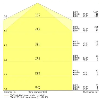 ![]() De kleurcode is een combinatie van de kleurweergave (CRI) en lichtkleur (Kelvin). Het eerste getal is de kleurweergave (1 = zeer slechte kleurweergave, 9 = maximale kleurechtheid). Het tweede en derde cijfer betreft de lichtkleur. Een lamp met kleurcode 830 heeft bijvoorbeeld een goede kleurweergave en straalt een warm wit licht uit (3000K), waar een lamp met de kleurcode 940 een uitstekende CRI heeft en een koel wit licht (4000K) uitstraalt. |