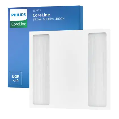 Beschrijving Philips LED Paneel CoreLine RC136B G4 38.5W 6000lm - 840 Koel Wit | 60x60cm - UGR<19